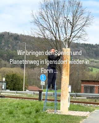 Wir reinigen und säubern die Planeten und auch die Stützen, und bringen neue Schilder an. Am Pluto wird eine neue Solaranlage angebracht, ansonsten wird alles an an den anderen repariert wo nötig. Wir helfen dazu, dass dem Sonnen und Planetenweg in Igensdorf wieder neues Leben angehaucht wird.