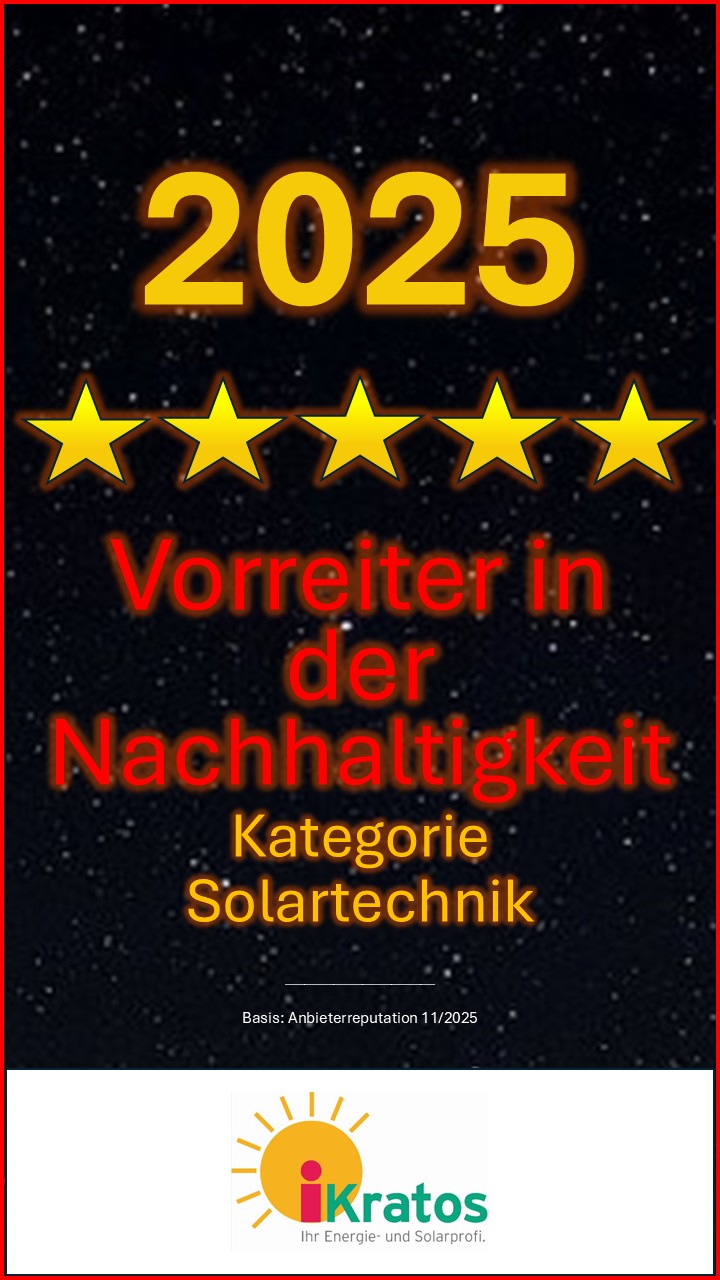 Die iKratos GmbH, ein führendes Unternehmen für Photovoltaik, Speicher- und Wärmepumpenlösungen, wurde für ihr herausragendes Engagement im Bereich Nachhaltigkeit und ihren Beitrag zur